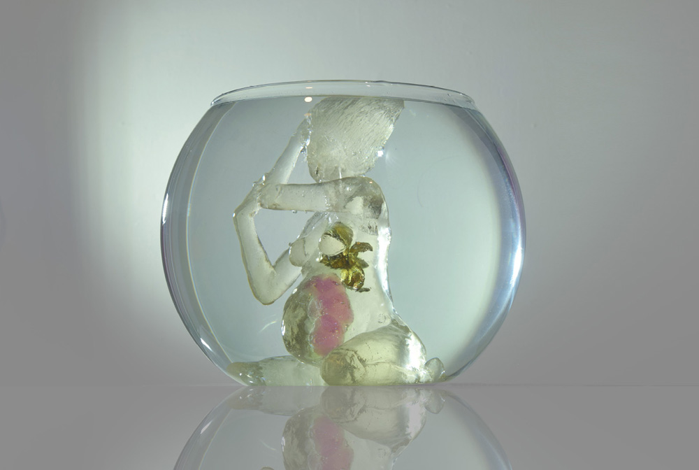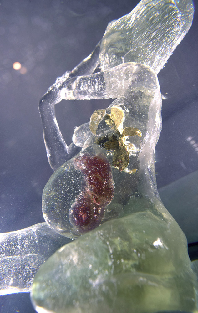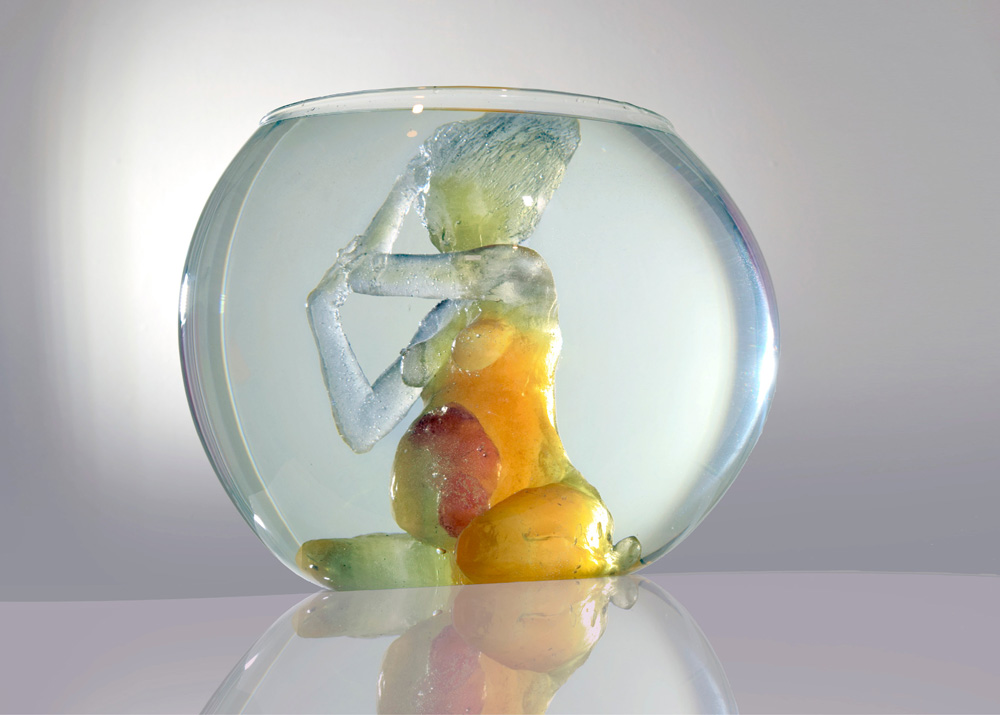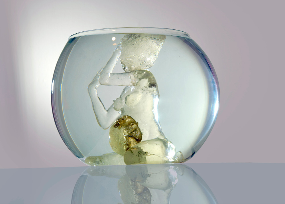 Resina epóxica, resina de poliester, porcelana fría, hojilla dorada, Vidrio. 35x35x30 cm 2019 Vendida, colección privada.