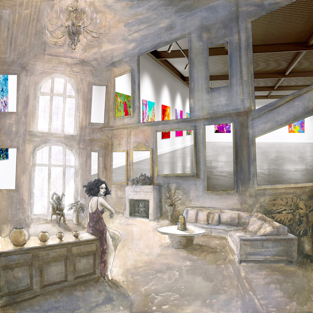 La responsabilidad retroactiva de la riqueza histórica basada en la esclavitud, colonización y explotación de recursos en regiones ahora prohibidas para migrantes. 2024 100×100 cm, Acrílico sobre lienzo y espejos. Referencia a contenido digital “La distribución de la riqueza”: https://www.instagram.com/p/C9iTpu5JPAi/